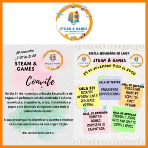 Houve lugar ainda a visitas de estudo ao EXPOLAB para assistir a palestras no âmbito dos “Vídeos Jogos na Educação” e para testar o simulador de realidade virtual. Alguns alunos participaram em workshops dinamizados também pelo EXPOLAB sobre modelação e impressão 3D.