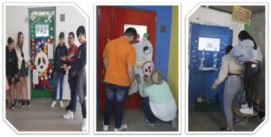 Com esta iniciativa, a Biblioteca pretendeu apelar à Paz através de um trabalho de cooperação entre todos os membros da nossa “Família Escolar”, a fim de fomentar não só a paz mundial, mas também a paz interior e para com o próximo, partilhando e respeitando ideias e aprendendo a trabalhar em equipa. Na penúltima semana, foi possível ver este espírito de cooperação e de paz nos corredores da nossa escola, pois eram muitos os alunos que em turma ou em pequenos grupos, com ou sem os seus professores dava asas à sua imaginação e decoravam as suas portas.