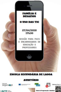 A Fundação para a Ciência e a Tecnologia, através do Centro Internet Segura, Departamento da Sociedade de Informação, nos dias 26 e 27 de abril próximos desloca-se à ilha de S. Miguel para dinamizar ações de sensibilização nas Escolas Secundárias de Ponta Delgada e Lagoa. Este Centro Internet Segura faz parte das redes INSAFE e INHOPE presentes em todos os países da União Europeia e que visam uma ação concertada e coordenada a nível Europeu contra os conteúdos nocivos e maliciosos, formando os cidadãos para uma utilização crítica da Internet. A Escola Secundária de Lagoa, através do seu Clube de Programação e Robótica, vem convidar os pais/Encarregados de Educação a assistir a uma sessão sobre a temática “O uso das TIC” no próximo dia 27 de abril, no auditório da Escola, às 17:30.